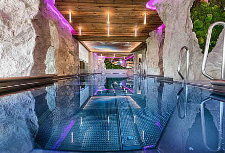 The Gemstone Spa offers precious, soothing warmth under the influence of energising stones such as amethyst, rose quartz and rock crystal. These have a positive effect on body and mind in the gemstone steam grotto, the amethyst relaxation room or during a gemstone massage. Soothing warmth is provided by the fire, saltwater or stone saunas, the lavender bath or the Swiss stone pine lounge. In the indoor pool, you can enjoy the benefits of the water.