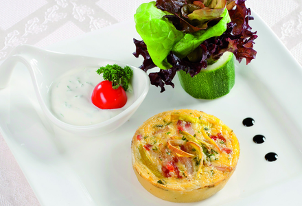 Lauch-Speck-Quiche mit Sauerrahmdip (für 4 Personen)