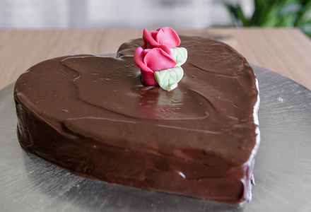 200 g Kochschokolade im Wasserbad schmelzen lassen. Nicht umrühren! Vom Wasserbad nehmen und ca. 200 g kalte und kleinwürfelig geschnittene Butterstückchen (kalt) schnell einrühren. Sofort glasieren. Je nach Belieben Deko darauf.