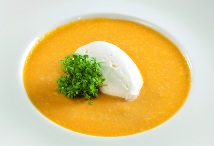 Hotelchefin Renate Winzer hat auch in diesem Jahr wieder ein kulinarisches Menü zusammengestellt. Jede Woche wird ein neuer Gang vorgestellt, den Sie zuhause nachkochen können. Heute beginnen wir mit dem ersten Gang – einer leckeren Karotten-Ingwersamtsuppe.